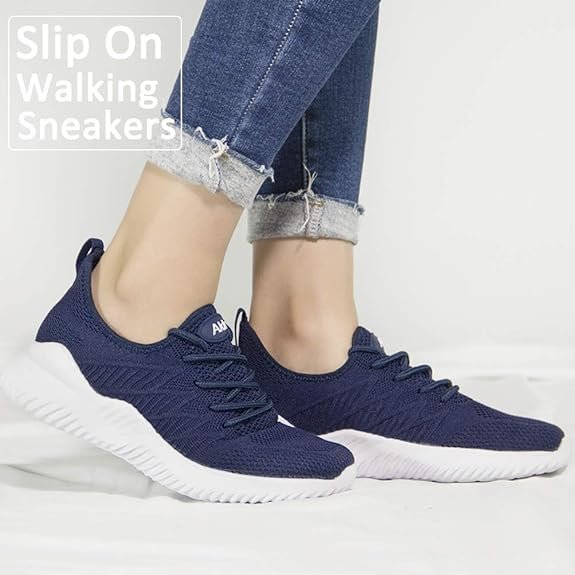 Akk Womens Walking Tennis Shoes – Slip On Memory Foam Lightweight Casual Sneakers for Gym Travel Work